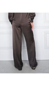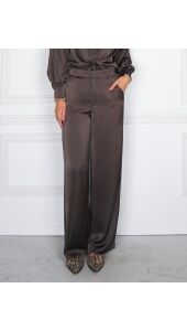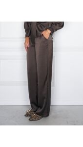 Deze satijnenlook pantalon in een bruine tint is een echte must-have voor een stijlvolle look! Gemaakt van polyester en elastaan, heeft hij een prachtige glans en zit hij supercomfortabel. Leuk te combineren een mooie blouse voor een chique look. Stijl je look af met je favoriete sieraden