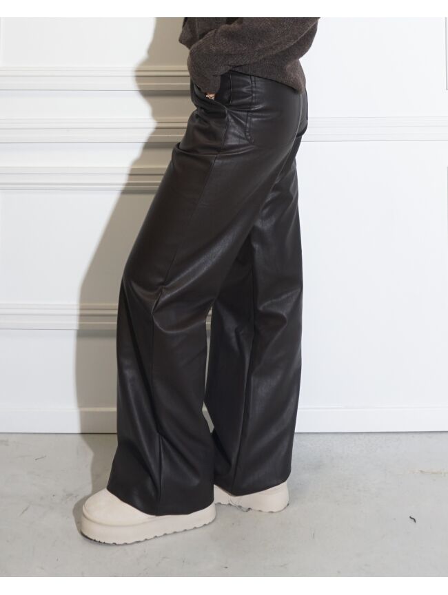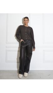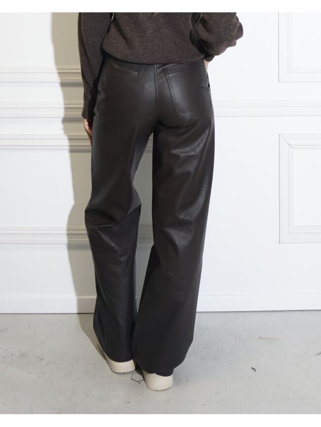 Deze bruine wide leg leren broek van Neo Noir is jouw nieuwe favoriete fashion statement. De wijde pijpen geven ‘m een stijlvolle flair, terwijl het leren materiaal zorgt voor een stoere touch. Perfect om te combineren met een cozy knit of een strakke top.