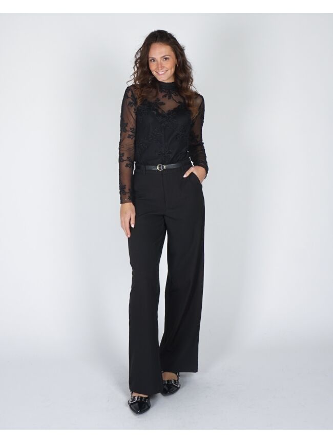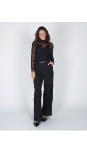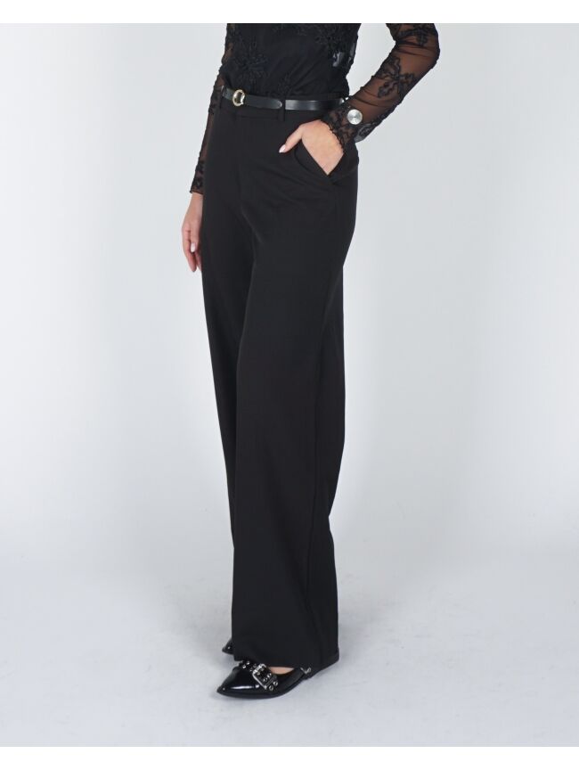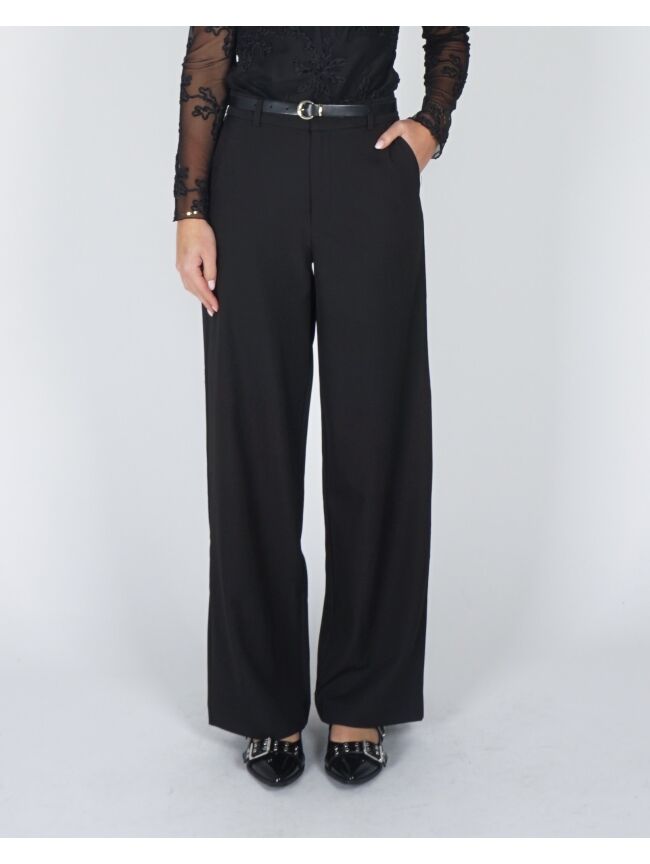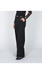 Deze zwarte pantalon is een echte must-have voor een verfijnde look. Het tijdloze design en de perfecte pasvorm maken hem ideaal voor zowel werk als speciale gelegenheden, en eenvoudig te combineren met je favoriete tops en blouses.