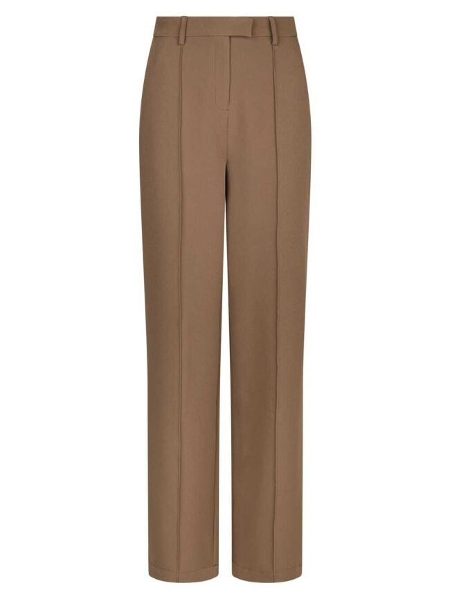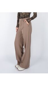 Deze PANTALON SURY DUSTY BROWN van Neo Noir combineert comfort met klasse. Het wide leg model heeft een flatterende hoge taille, sluit met rits en knoop, en is afgewerkt met ceintuurlussen. Met steekzakken voor en paspelzakken achter is dit de perfecte basic met een moderne twist.