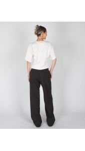 Deze pantalon van Neo Noir heeft een middelhoge taille en wijde pijpen voor een moderne, elegante uitstraling. De persvouwen en riemlussen geven de broek een verfijnde, formele touch, waardoor hij zowel casual als chic te stylen is. Een tijdloos model dat moeiteloos in elke garderobe past.