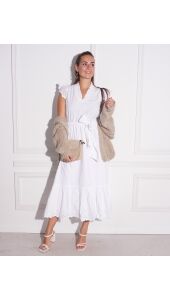 Mooie lange jurk met elastiek in de taille. De jurk heeft ook enkele volant details bij de mouwen. Draag deze jurk tijdens een lekker shopping dagje in de stad of tijdens een avondje uit. Wees creatief en stijl je look af met een leuk sneakertje voor een alledaagse look of een hakje voor een nettere look. Time to shine all day!