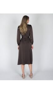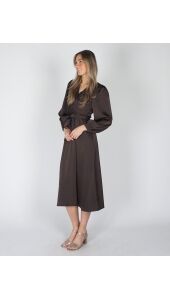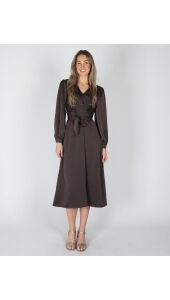 Deze jurk van Neo Noir is uitgevoerd in een stevige satijnkwaliteit voor een elegante, luxe uitstraling. Het overslagdetail met strik accentueert de taille, terwijl de V-hals en lange mouwen zorgen voor een vrouwelijke, tijdloze look. Een stijlvol item dat zowel chic als modern te dragen is.