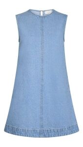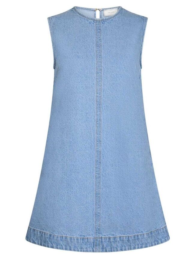 Dit korte, mouwloze denim jurkje heeft een stoere en vrouwelijke look. Het rechte model met subtiele details zorgt voor een tijdloze stijl. Ideaal voor zonnige dagen of om laagjes mee te creëren.