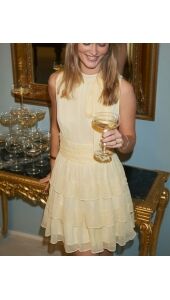 De ruffels zorgen voor een speels en vrolijk detail. Makkelijk te stylen met zowel sneakers als boots. Door het korte model is de jurk perfect voor een frisse, vrouwelijke look