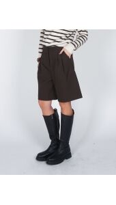 Deze stijlvolle bermuda heeft een hoge taille en rechte, korte pijpen voor een moderne look. De plooien en steekzakken zorgen voor een elegante uitstraling, terwijl de zachte, elastische stof heerlijk comfortabel draagt. Afgewerkt met een knoop-, haak- en ritssluiting en decoratieve paspelzakken achter. Perfect voor een chique zomerse outfit.
