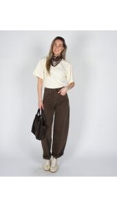 Het model is 1.77m lang en draagt maat 34