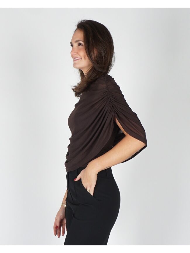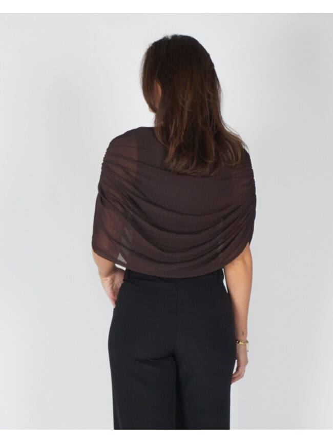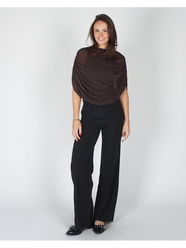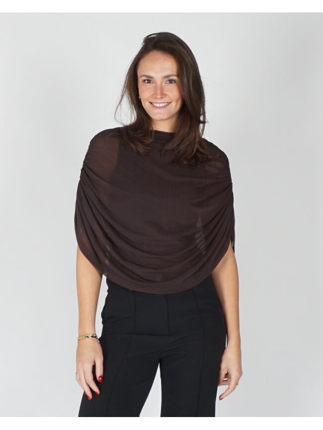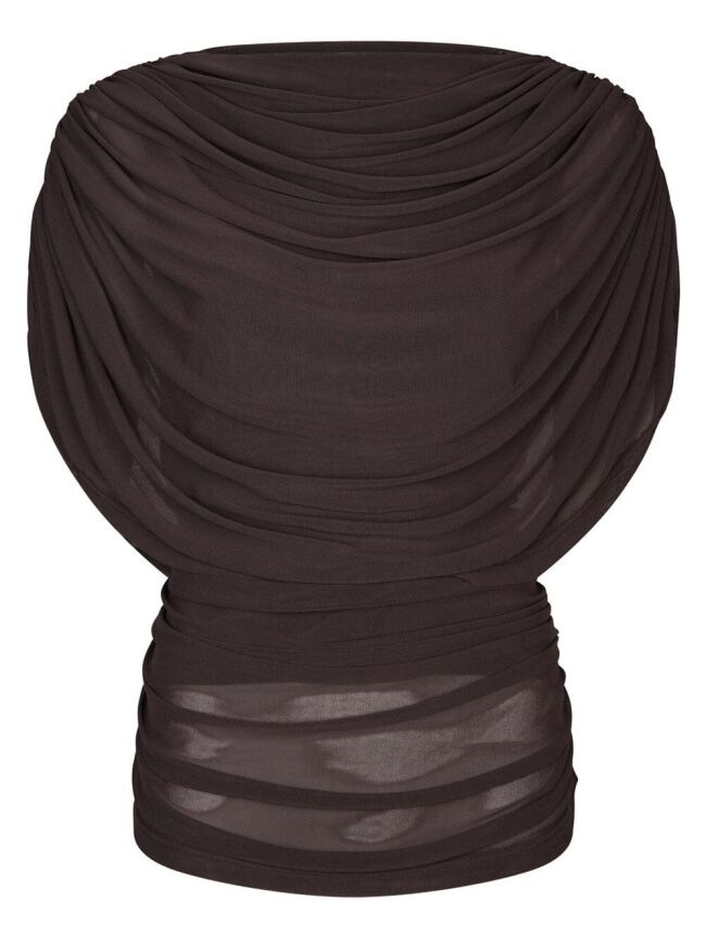 Deze bruine mesh-top van Neo Noir is een echte eyecatcher met een vrouwelijke en moderne uitstraling. De doorschijnende stof geeft de top een verfijnd en speels karakter, terwijl de plooidetails langs de zijnaden en de elegante drapering aan de voorkant zorgen voor een flatterende pasvorm. Perfect om te dragen als statement piece, zowel casual als chic gestyled.