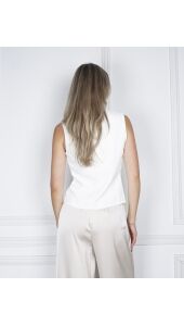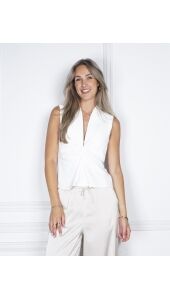 Witte top van Neo Noir met mouwloos ontwerp. De top heeft een kenmerkende twist-detail aan de voorkant die een mooie drapering in de stof creëert.