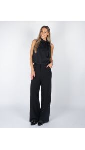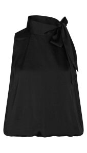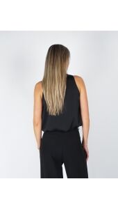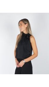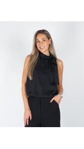 Deze top veda zwart is gemaakt van een gladde, soepelvallende stof en afgewerkt met een subtiele strik aan de zijkant van de hals. Een verfijnd detail dat zorgt voor een vrouwelijke touch. Perfect te dragen bij zowel een formele als casual look.