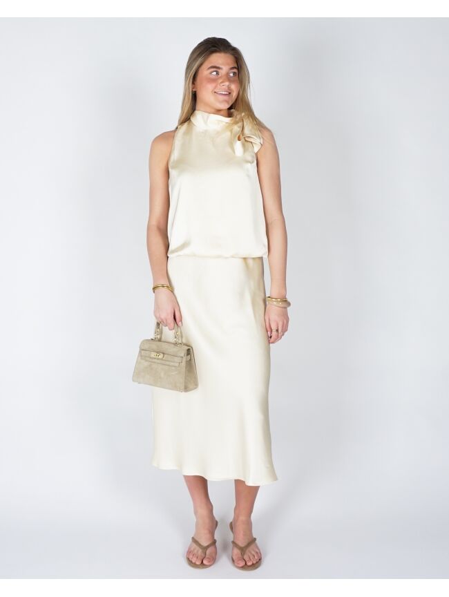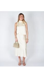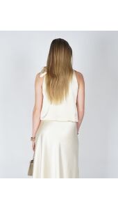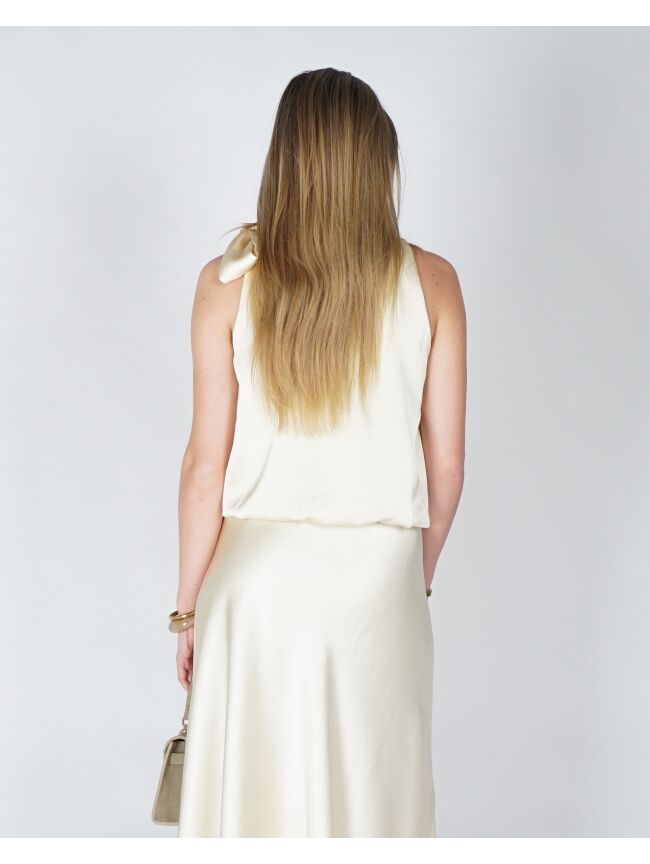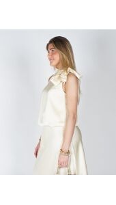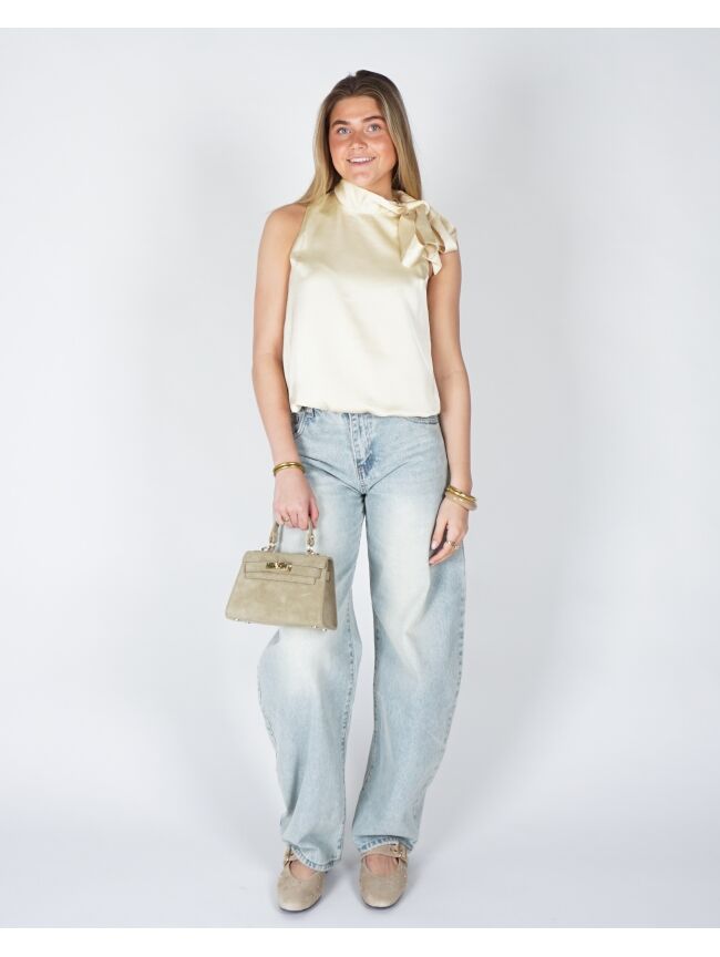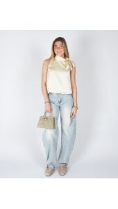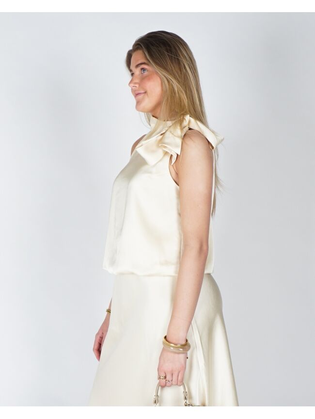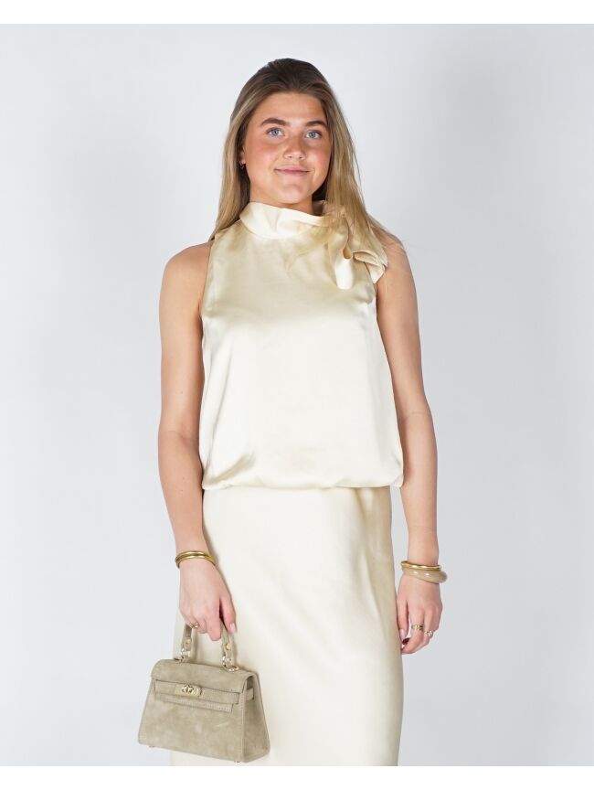 Deze elegante top is uitgevoerd in een zachte, soepelvallende stof met een subtiele glans. De verfijnde strik bij de hals geeft het ontwerp een vrouwelijke en stijlvolle uitstraling, terwijl de losse fit zorgt voor een comfortabele, moeiteloos chique look. Perfect te combineren voor zowel een geklede als meer casual outfit.