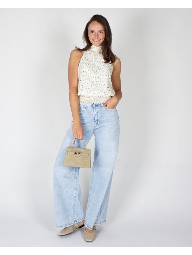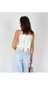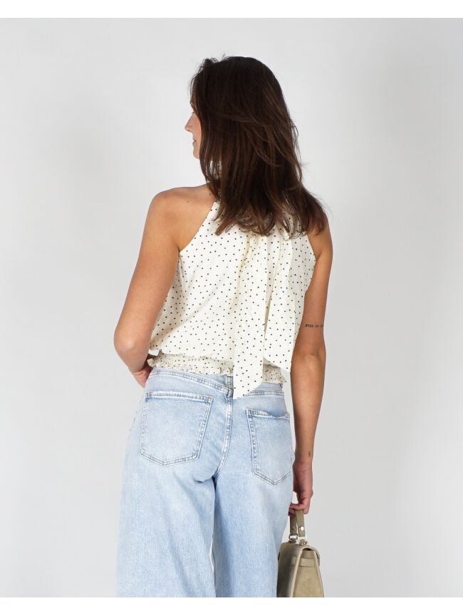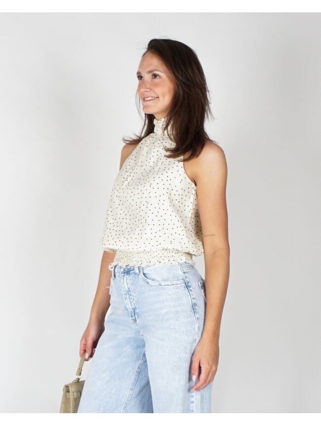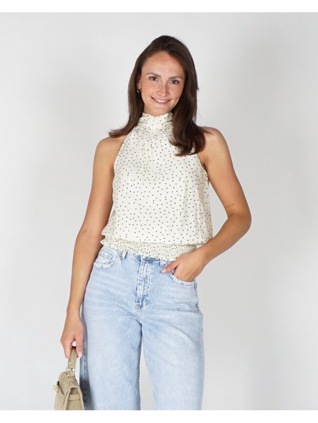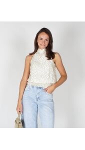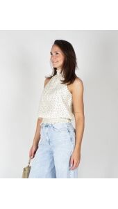 Deze halter top met subtiele stippenprint geeft jouw look een elegante en frisse uitstraling. De soepelvallende stof en aangesloten hals zorgen voor een vrouwelijke en moderne fit. Perfect te combineren met de bijpassende rok of een jeans voor een stijlvolle outfit.