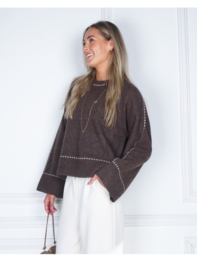 De bruine Roeme trui van Neo Noir voelt superzacht aan en geeft je outfit direct een warme uitstraling. Ideaal voor cozy dagen, zonder in te leveren op stijl.