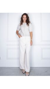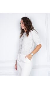 Schattig gebreid vestje met korte mouwen en met dezelfde kleur knoopjes aan de voorkant. Combineer met een fijne jeans voor een casual look of met een essential pantalon voor een chic look.