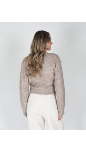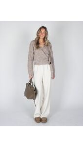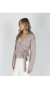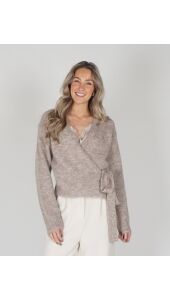 Zacht en stijlvol: het Ronia wikkelvest van Neo Noir in beige melange heeft een elegant wikkelontwerp met strikceintuur in de taille, een flatterende V-hals en comfortabele lange mouwen. Perfect voor zowel casual als chique combinaties.