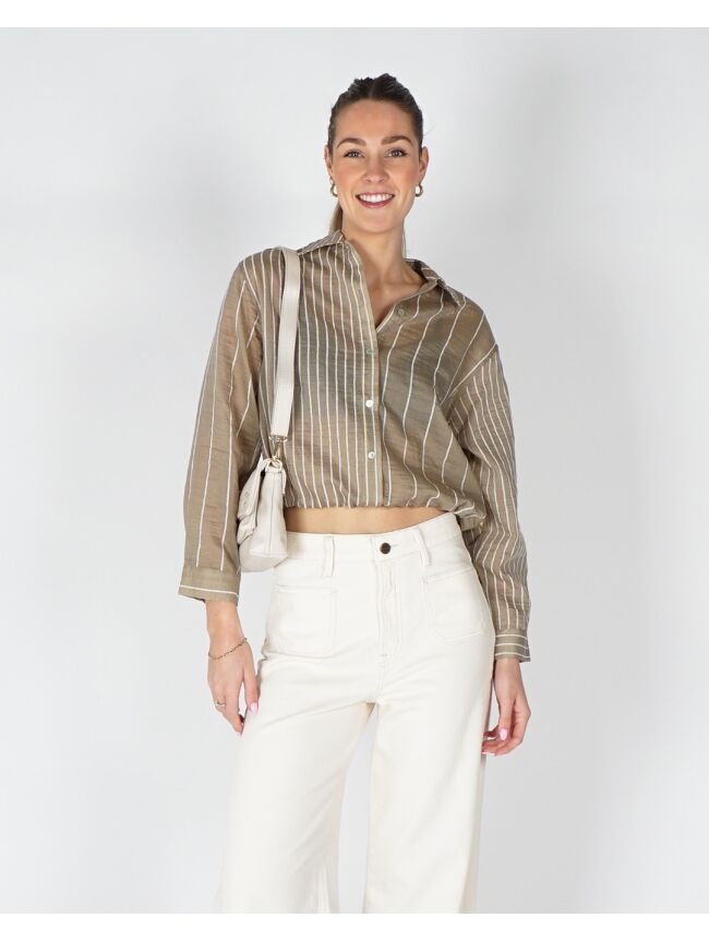 Subtiel en stijlvol, deze gestreepte blouse voegt meteen karakter toe aan je outfit. De Nelly blouse stripe in army kleur is gemaakt van zachte lyocell en heeft een iets ruimere pasvorm met een iets korter model, waardoor hij perfect te dragen is met een jeans. Combineer deze streep blouse met een nette pantalon voor werk of met je favoriete jeans voor een casual, toch verzorgde look.