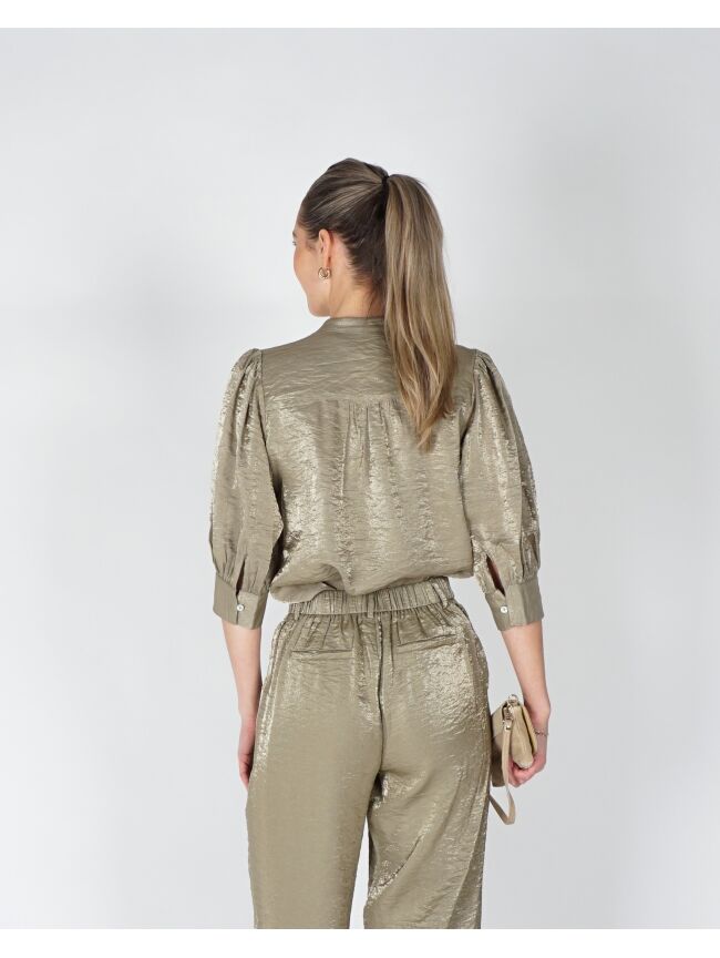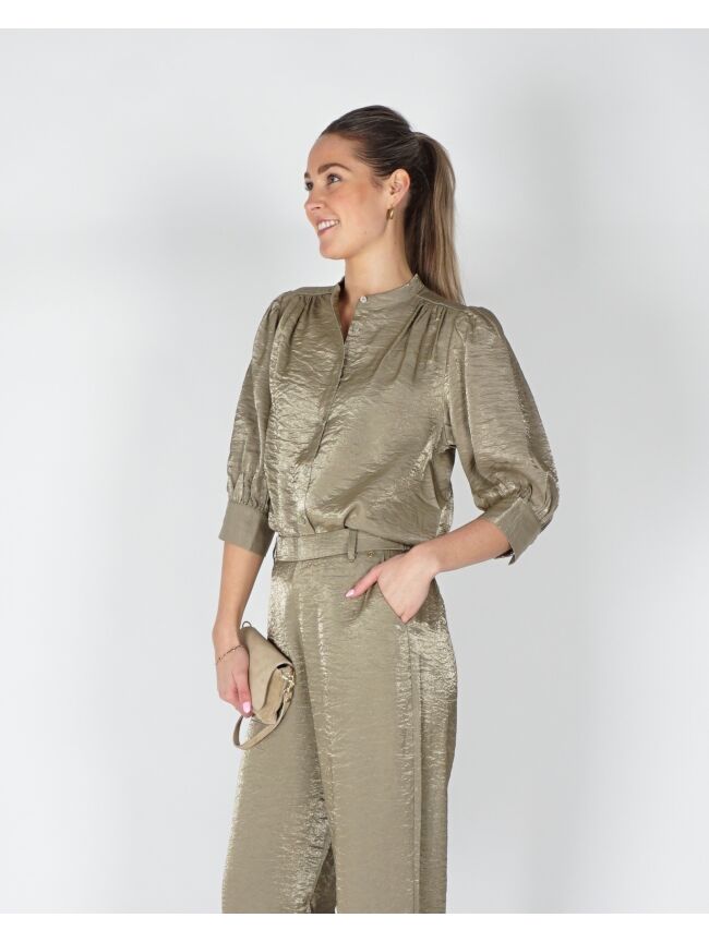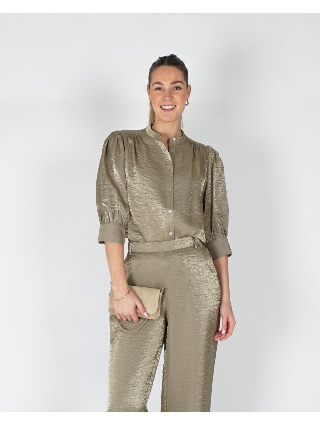 Met een subtiele glans en een stoere twist is deze shiny blouse een echte blikvanger. De Lilly blouse shiny valt iets ruimer, waardoor hij luchtig en elegant valt, en is voorzien van knoopjes aan de voorkant voor een verfijnd detail. Gemaakt van zachte viscose voelt de blouse licht en soepel aan op de huid. Combineer de army blouse met de Linsey pants army voor een stijlvolle two-piece set.