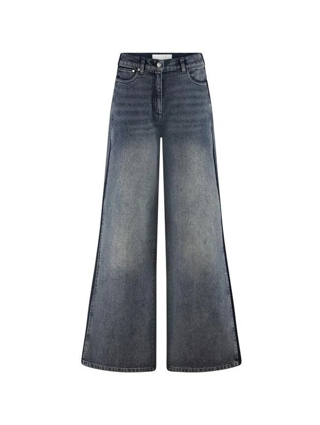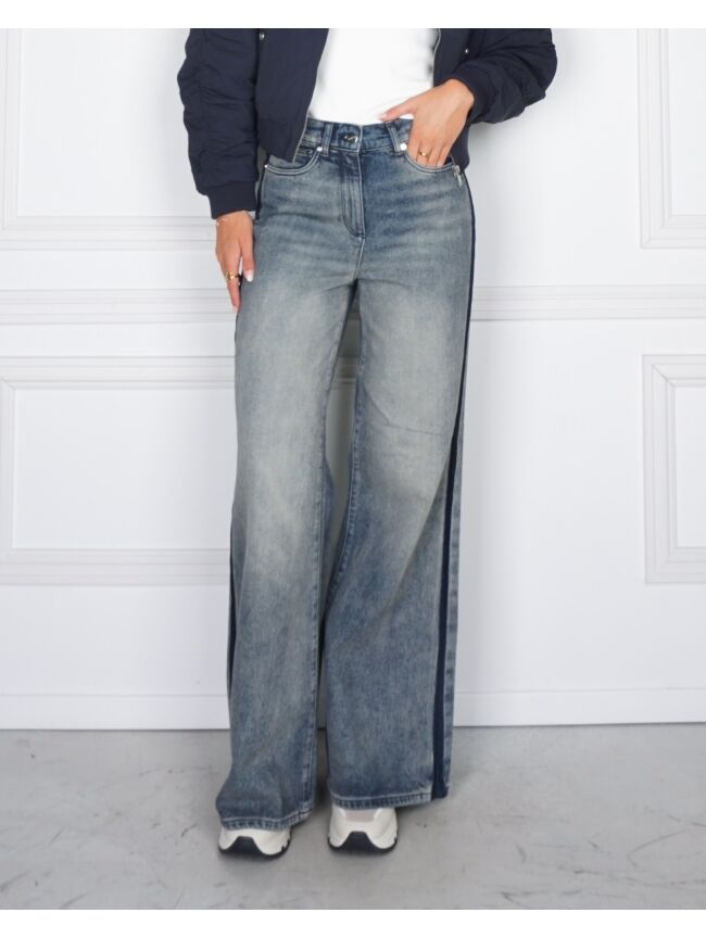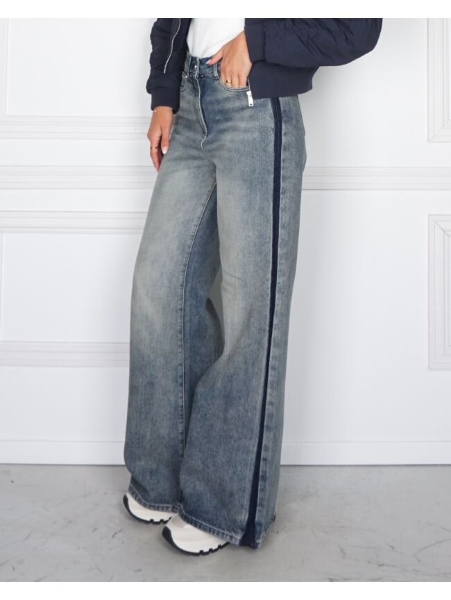 De Ruby Pants Denim is een wide leg jeans zonder stretch en met een opvallende contrasterende streep langs de zijkant. Deze stoere maar vrouwelijke broek geeft elke casual outfit een sportieve en eigentijdse touch.