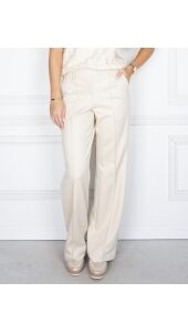 Perfect te combineren met een blouse en hakken voor een geklede look, of juist casual met een T-shirt en sneakers. Deze broek is een ideale mix van comfort en stijl en voor elke gelegenheid.