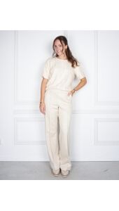 Deze comfortabele pantalon is gemaakt van zachte scuba-stof in een frisse off white kleur. De stof voelt stretchy aan en zit net zo lekker als een joggingbroek, maar heeft een nette uitstraling waardoor je ‘m ook stijlvol kunt dragen.