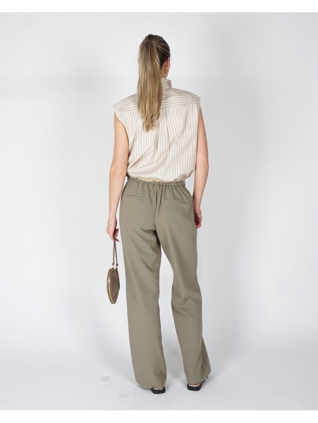 De Jill pants is de perfecte basis pantalon voor elke garderobe. Dankzij de elastieken band aan de achterzijde biedt deze pantalon extra draagcomfort. Mooi gekleed te dragen, maar ook perfect voor een casual look. Voorzien van lusjes aan de tailleband om een riem te dragen, steekzakken aan de voorkant en paspelzakken aan de achterkant.