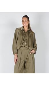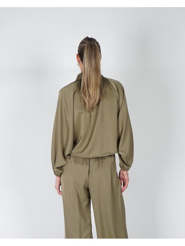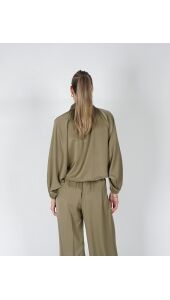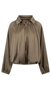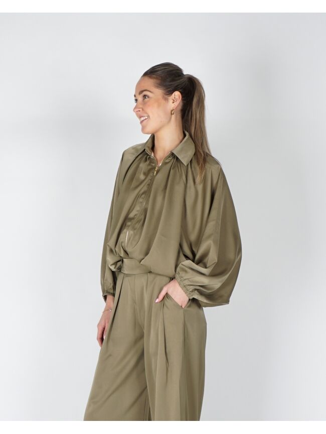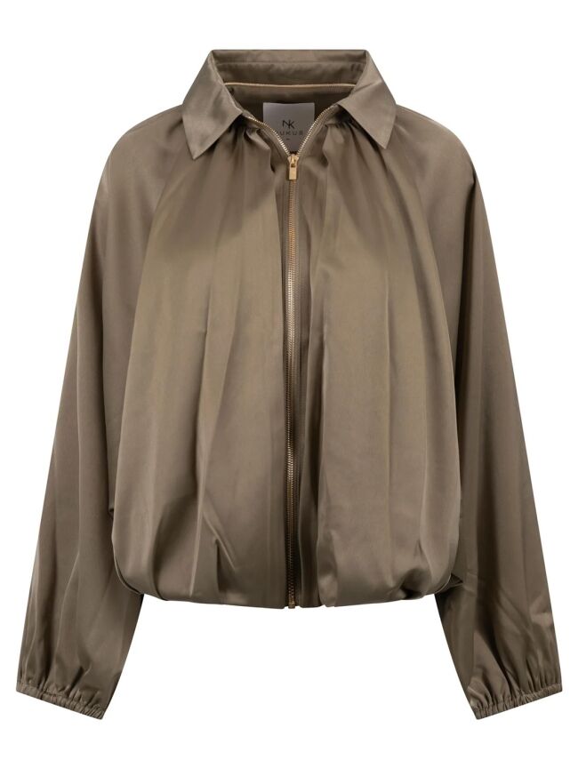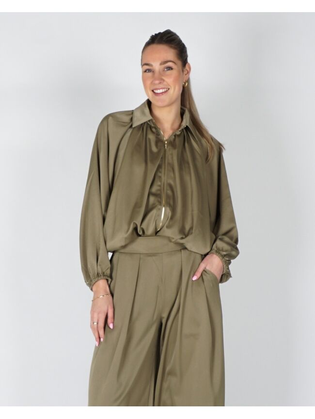 Dit satijnglans jasje met kraag en rits heeft een elegante uitstraling. De plooien zorgen ervoor dat het jasje mooi en soepel gedrapeerd valt. Perfect te combineren met de bijpassende Juna Pants voor een luxe en stijlvolle set.