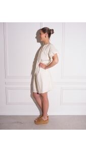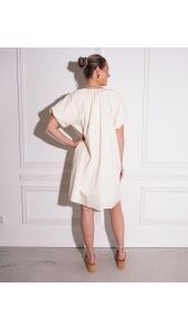 De Ramona dress is de nieuwe must have van het seizoen. De jurk heeft een knoopsluiting, v-hals, en steekzakken. Verder heeft de jurk pofmouwen, een kleine plooi en een koord aan de bovenkant van de jurk. Combineer de jurk met je eigen favoriete accessories!