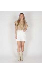 Deze short heeft een op maat gemaakte pasvorm met elastiek aan de achterkant voor optimaal comfort en draaggemak. De riemlusjes maken het mogelijk de outfit af te werken met een mooie riem, waardoor je eenvoudig een complete, stijlvolle look creëert voor het voorjaar en de zomer.
