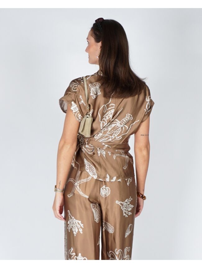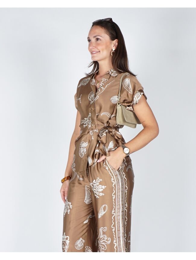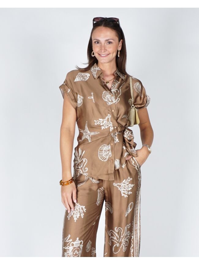 De Aneta top heeft een ruimvallende pasvorm en voelt heerlijk luchtig aan dankzij de zachte viscose en rayon mix. De schuine omslagknoop aan de voorzijde geeft de top een speels en elegant detail. De bruine print maakt dit item een echte blikvanger binnen de damesmode collectie. Combineer deze dames top met een jeans voor een casual look of draag hem met een offwhite broek voor een frisse en stijlvolle voorjaarsoutfit.