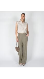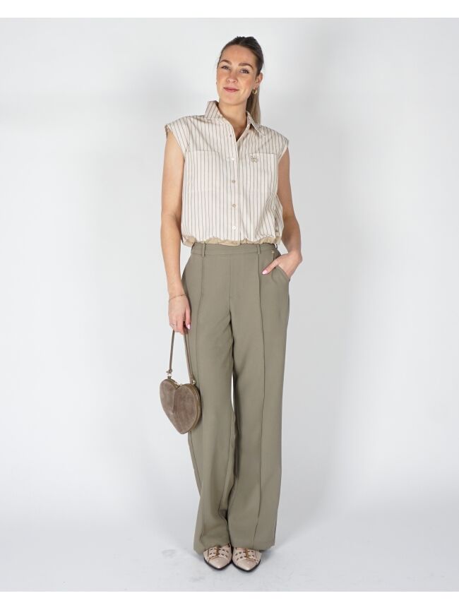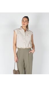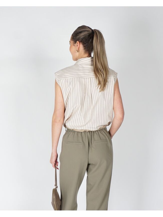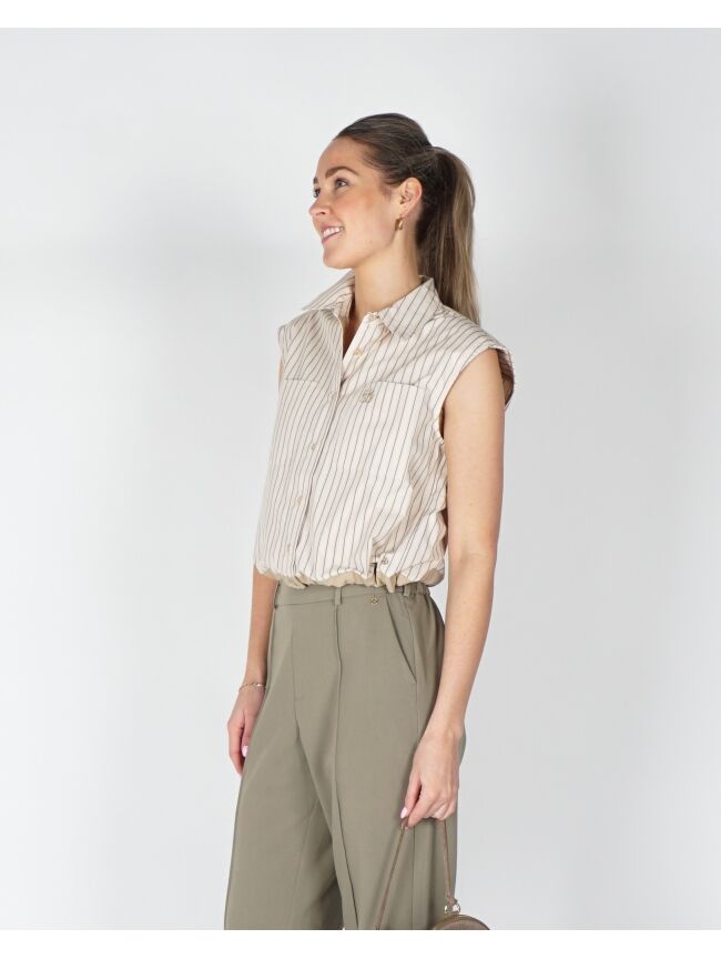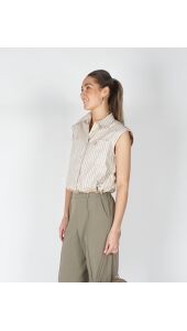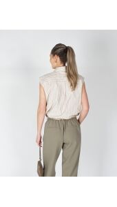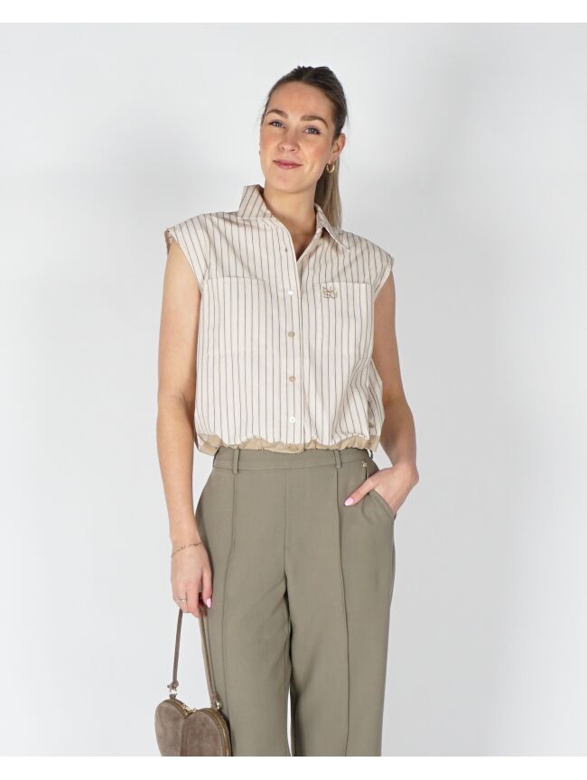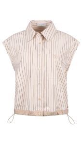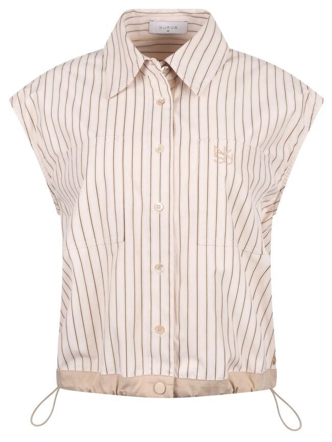 De gestreepte top is stijlvol en veelzijdig. De zandkleurige streepblouse heeft een borstzakje met Nukus-logo. De doorknoopsluiting geeft de top een verfijnde look. De koordjes aan de onderzijde zorgen voor een leuk accent op de taille, waardoor je de top zowel casual als gekleed kunt dragen.