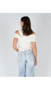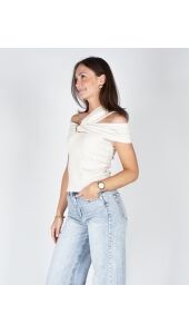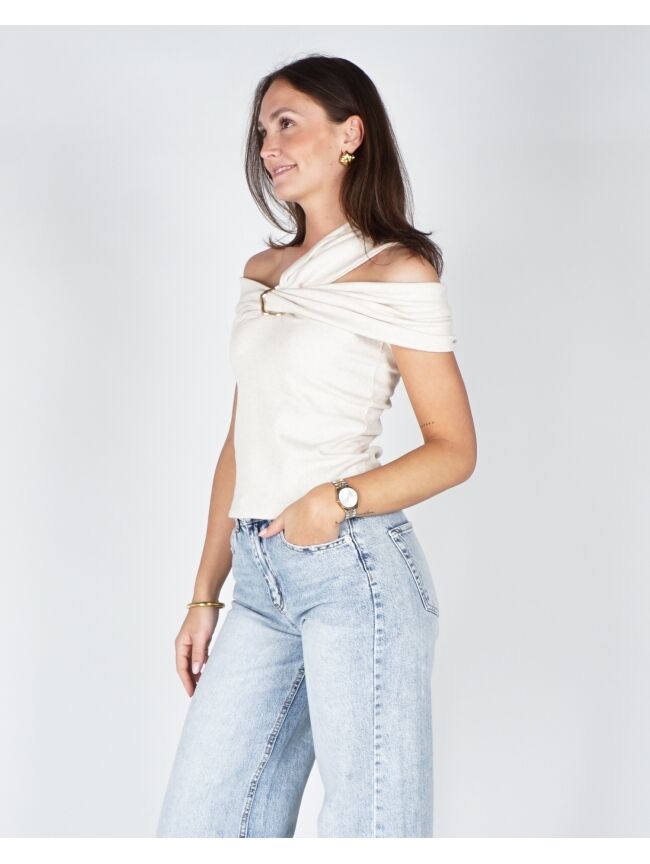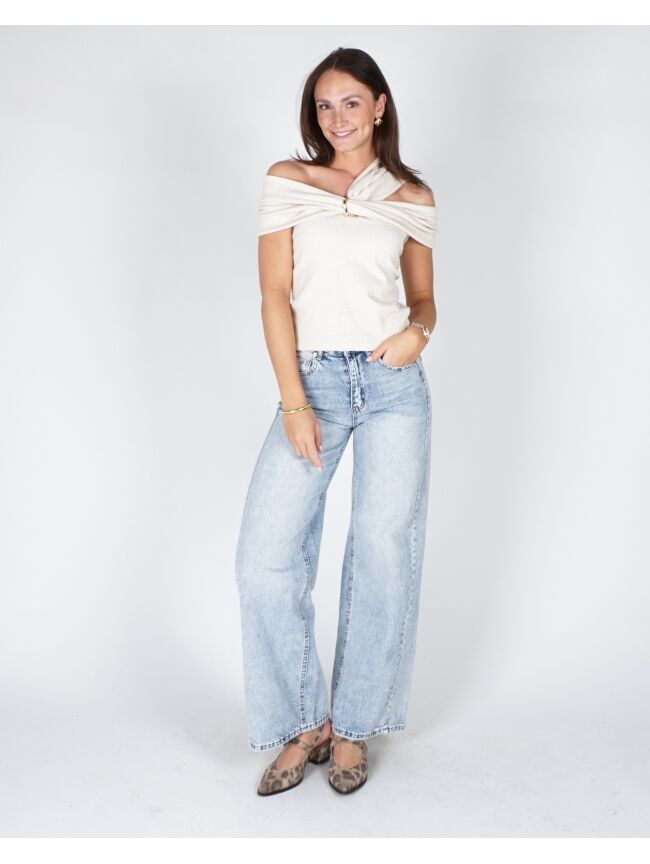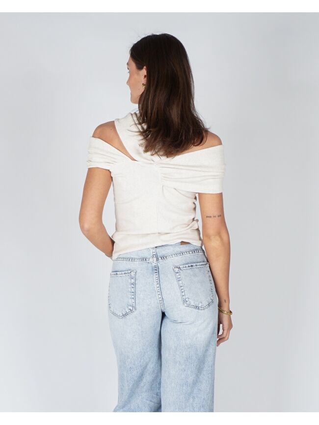 Een relaxte en vrouwelijke top van Nukus met een off-shoulder ontwerp dat direct een zomerse uitstraling geeft. De Sharon top in sand melange valt soepel en accentueert subtiel de schouders, waardoor het een speels en elegant effect heeft. Het materiaal van 94% katoen en 6% elastaan voelt zacht en comfortabel aan, met net genoeg stretch voor een mooie pasvorm. Perfect te combineren met een lichte jeans, rok of short voor een frisse en casual voorjaarslook. Een veelzijdige top die je garderobe stijlvol aanvult.