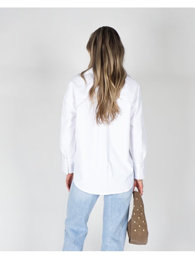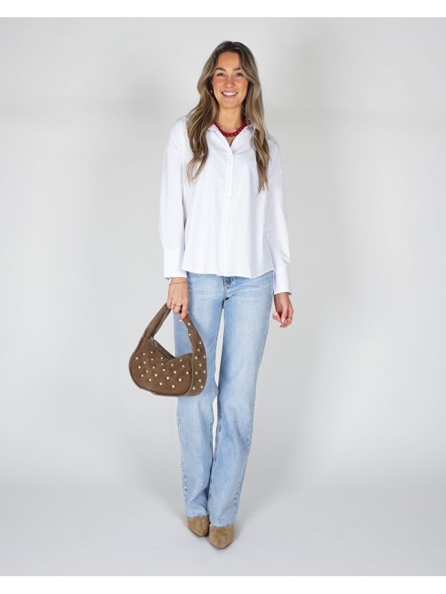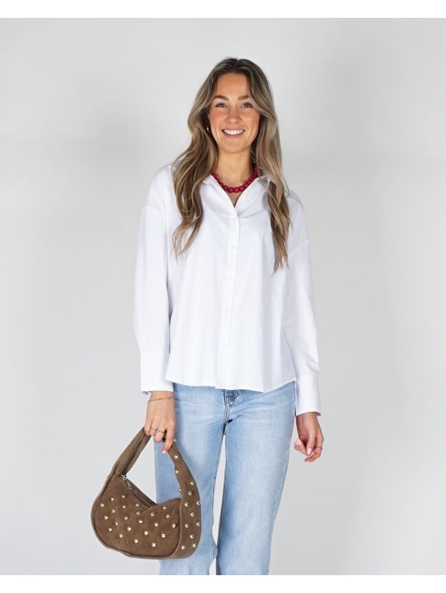 De witte blouse is fris en makkelijk te dragen. De stof is luchtig en zit prettig. Perfect op een jeans of rok voor elke dag.
