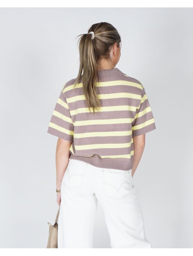 Deze polo top met strepen geeft jouw outfit een frisse en speelse uitstraling. De zachte stof en klassieke kraag zorgen voor een comfortabele en stijlvolle fit. Perfect te combineren met een jeans voor een trendy everyday look.