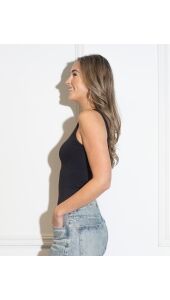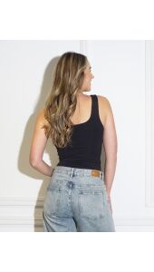 De perfecte basic! Deze basis top van Only is aan twee kanten te dragen, dus met lage vierkante hals of omgedraaid met een hooggesloten hals. De top is gemaakt van een wat dikkere stof dus schijnt niet door en tekent ook niet! Deze top heeft iedereen nodig in haar kast!