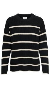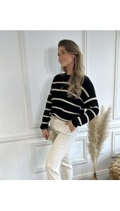 De fijnste trui voor de koude wintermaanden! Deze trui van Only is zwart met beige strepen. Combineer met een leren broek of jeans & you're ready to go!