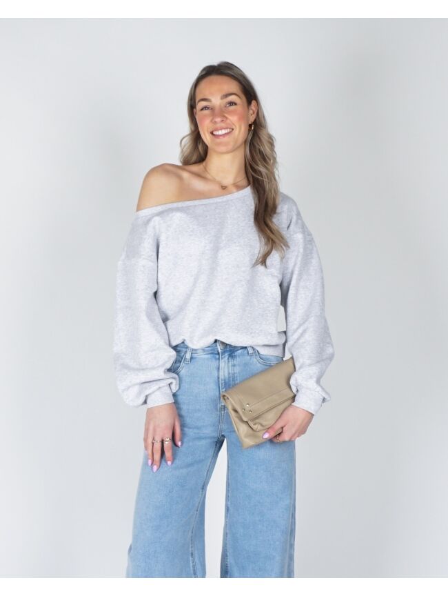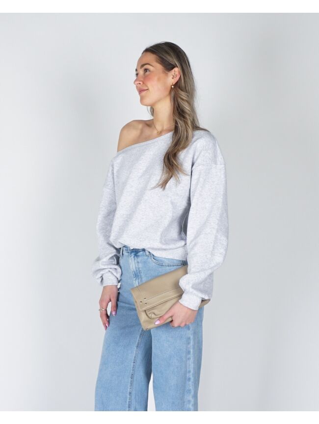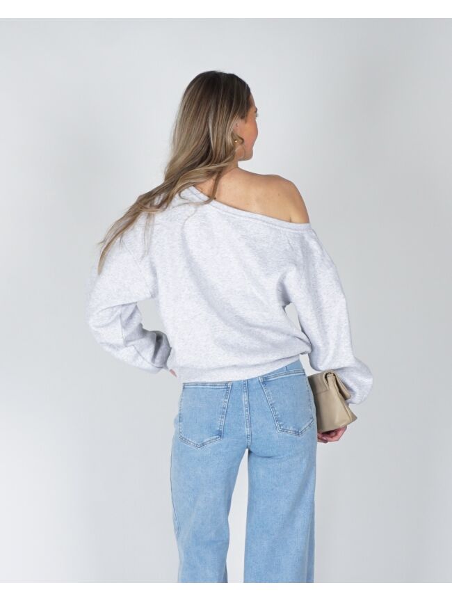 ONE SHOULDER SWEATER RHINA LICHT GRIJS