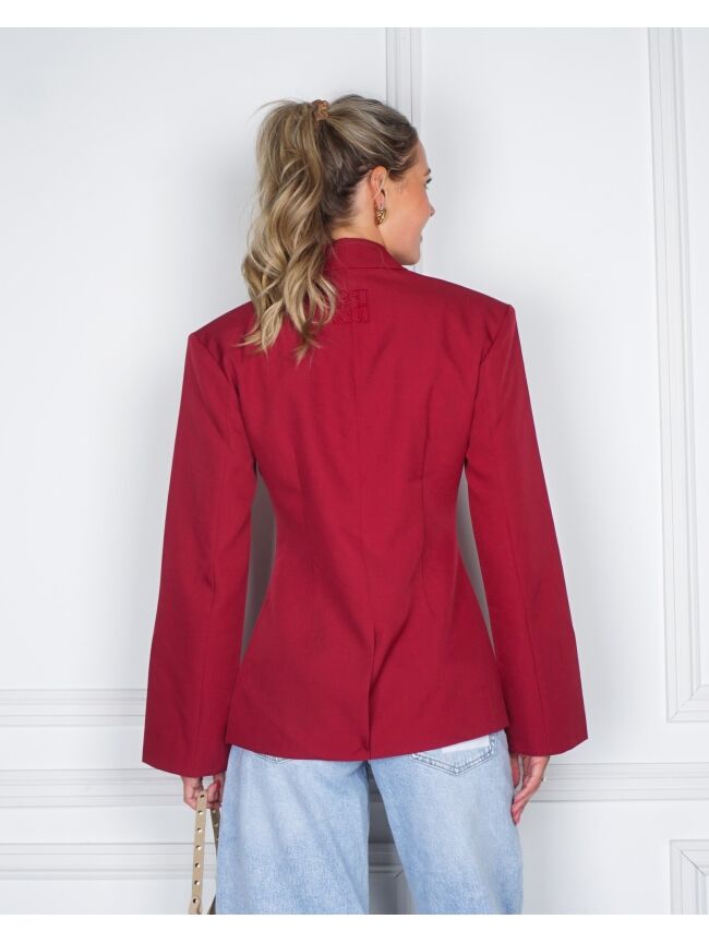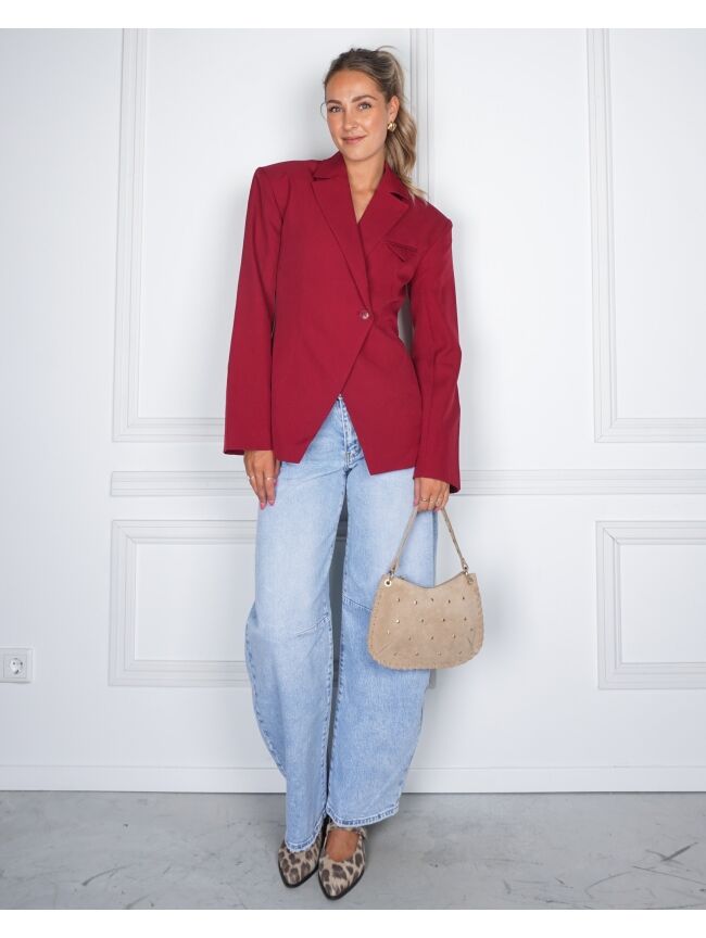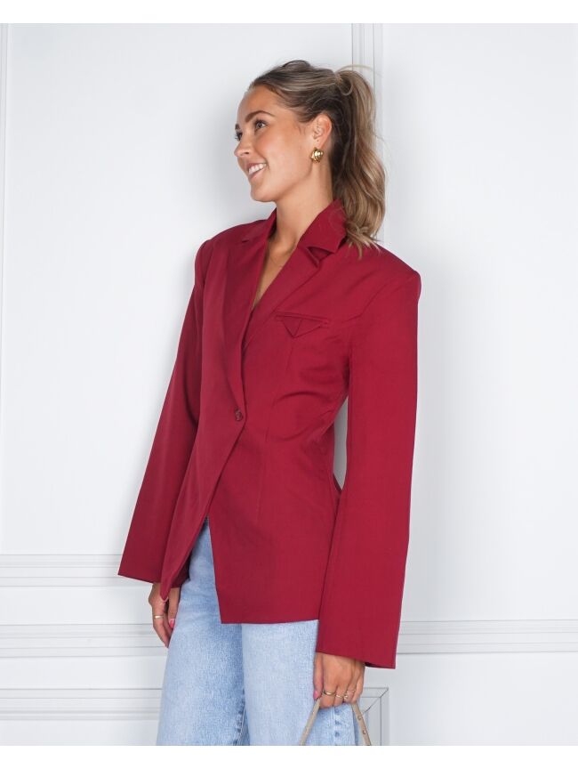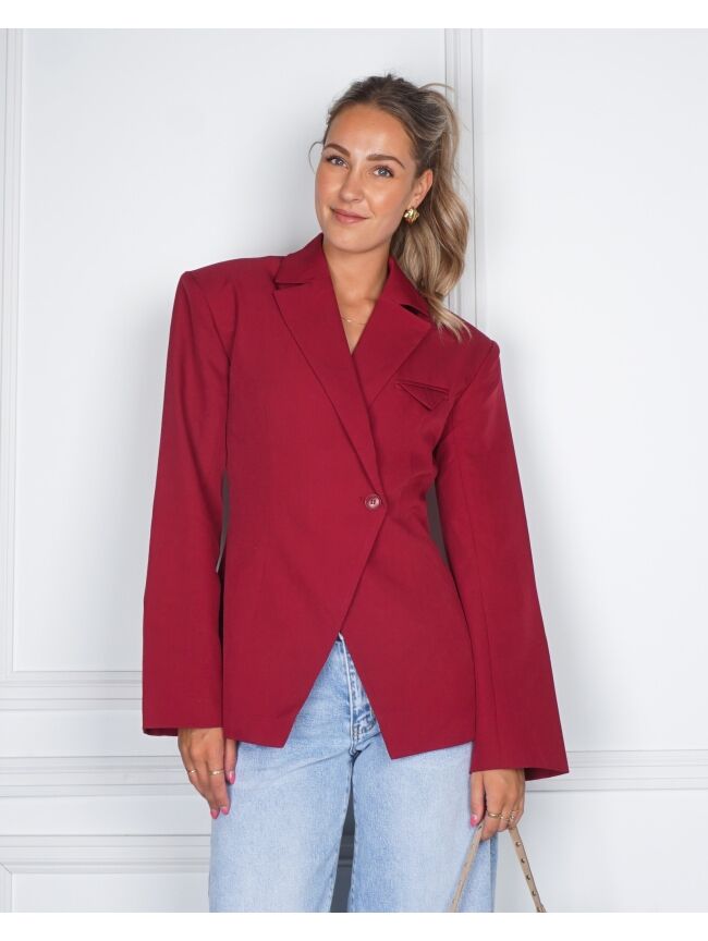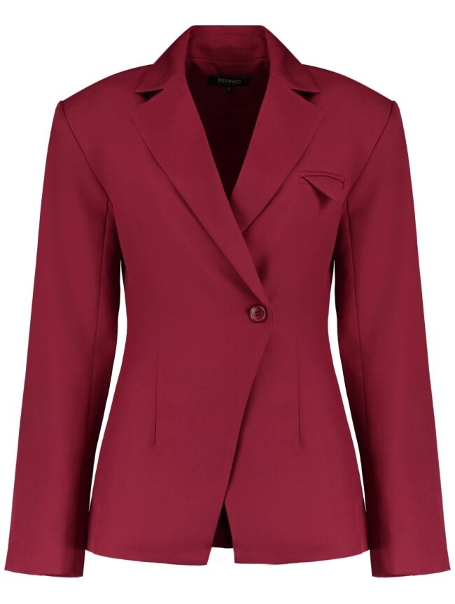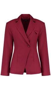 Chic met een edge. Gemaakt van rijke suitstof en ontworpen met een overlappende sluiting voor een getailleerd silhouet. Afgewerkt met schoudervulling, borstzakje en een stijlvolle button.