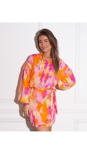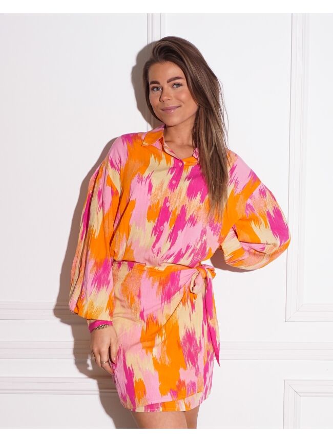 Deze nieuwe blouse is perfect voor de zomer. Door de leuke kleurtjes maakt het je outfit helemaal vrolijk. Combineer de blouse met het bijpassende rokje en je bent helemaal ready to go!