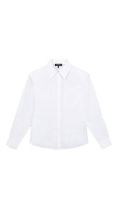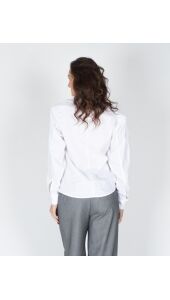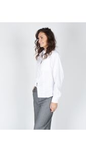 Deze blouse met hourglass pasvorm heeft een vrouwelijke, elegante snit die het figuur mooi accentueert. De schoudervullingen zorgen voor extra vorm en een moderne look, terwijl de knoopsluiting, borstzak en klassieke kraag het ontwerp tijdloos en stijlvol maken. Perfect te combineren voor zowel een casual als geklede outfit.