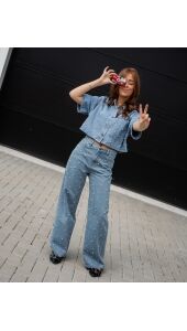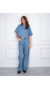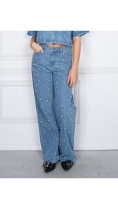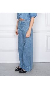 Jeans met wijde pijpen. Verrijkt met parels over de hele jeans. Gemaakt van een denimstof van een katoenmix. Met een RFND-logopatch op de rug. Combineer met de ADELINE top voor de perfecte look!