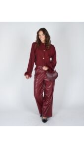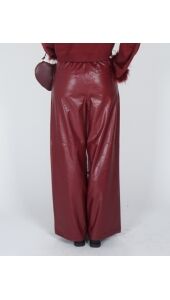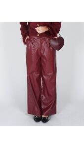 Deze faux leren broek is het perfecte voorbeeld van moeiteloze elegantie. Het zachte imitatieleer geeft de broek een luxe uitstraling, terwijl de elastische band aan de achterkant zorgt voor een comfortabele pasvorm die met je meebeweegt.