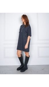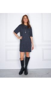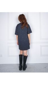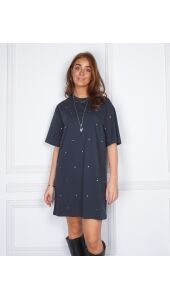 Oversized T-shirtjurk, gemaakt van onze rijke katoenen jerseykwaliteit. Ontworpen met studs over het hele lichaam. Afgewerkt met een geribde rand langs de halslijn.