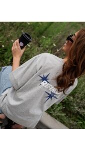 Oversized T-shirt gemaakt van onze zachte katoenen jersey kwaliteit. Met een artwork op de borst en rug. Afgewerkt met ribboord langs de halslijn.