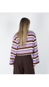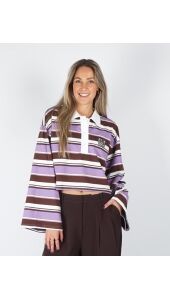 Deze cropped polo van Refined is een perfecte mix van sportief en vrouwelijk. De polo heeft een frisse, moderne uitstraling dankzij de combinatie van bruine, lila en witte strepen. De lange mouwen en zachte stof zorgen voor een comfortabele fit, terwijl de cropped lengte de polo een eigentijdse twist geeft. Een echte must-have dit seizoen.