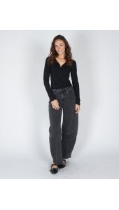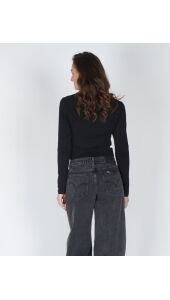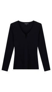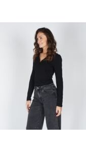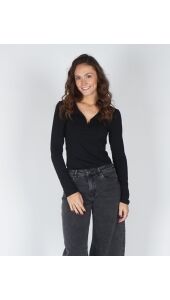 Deze aansluitende top met lange mouwen is gemaakt van een zachte, rekbare jersey kwaliteit die mooi aansluit op het lichaam. De V-vormige halslijn geeft een subtiele, vrouwelijke touch en maakt de top perfect voor zowel casual als geklede looks. Een echte basic met nét dat beetje extra.
