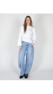 De Longsleeve Romy heeft een asymmetrische snit en is gemaakt van zacht 100% katoen. De lichte plooitjes in de taille geven een flatterende pasvorm, terwijl de iets uitlopende mouwen zorgen voor een speelse look. Achter in de hals is de top afgewerkt met het geborduurde RFND-logo voor een subtiele, stijlvolle touch.