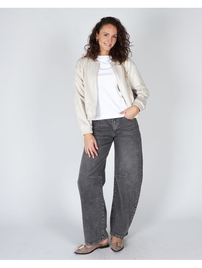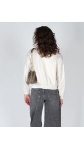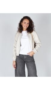 Dit elegante bomberjack is de perfecte mix van casual en chic. De zachte beige kleur geeft het jasje een tijdloze uitstraling, terwijl de subtiele gouden details zorgen voor een luxe touch. Dankzij het korte model en de comfortabele pasvorm is dit bomberjack ideaal om moeiteloos elke outfit naar een hoger niveau te tillen. Draag ’m over een basic top met jeans voor een everyday look, of combineer met een jurk voor een stijlvolle twist. Een echte must-have voor elk seizoen.