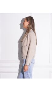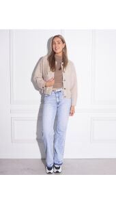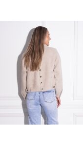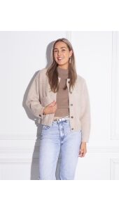 Super zacht en kort gebreid jasje. Dit gezellige jasje heeft een boxy silhouet, een platte kraag, een knoopsluiting, twee open voorzakken, een knoopsluiting op elke manchet en knoopdetails op de achterkant.