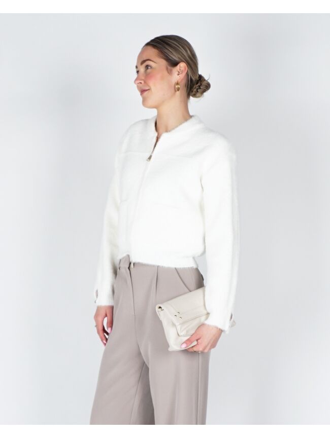 Voel je fantastisch in deze heerlijk zachte, korte cardigan van Rino & Pelle! De prachtige witte kleur geeft je look een frisse en vrolijke uitstraling. Dit vestje, met een handige ritssluiting en een comfortabele pasvorm, is een absolute aanwinst voor je garderobe. De zachte stofmix voelt geweldig aan op de huid. Combineer het moeiteloos met je favoriete jeans voor een complete en verzorgde outfit.