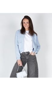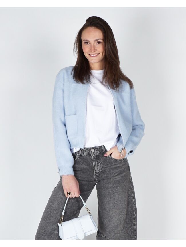 Voel je fantastisch in deze heerlijk zachte, korte cardigan van Rino & Pelle! De prachtige lichtblauwe kleur geeft je look een frisse en vrolijke uitstraling. Dit vestje, met een handige ritssluiting en een comfortabele pasvorm, is een absolute aanwinst voor je garderobe. De zachte stofmix voelt geweldig aan op de huid. Combineer het moeiteloos met je favoriete jeans voor een complete en verzorgde outfit.